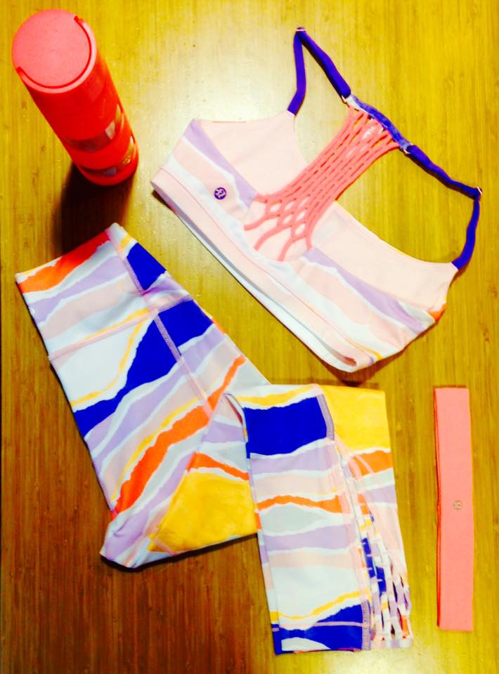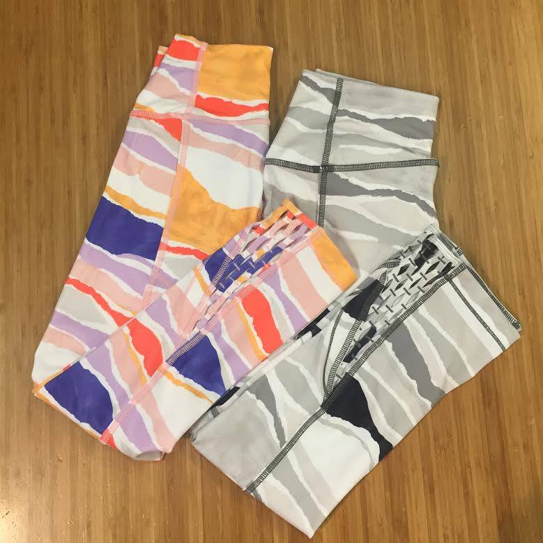 The True Self gear that will upload tomorrow is in stores now! As you can tell, I’m a fan of renaming lululemon prints with somewhat snarkier names. The black & white to me is ‘Papier Mache’, and I want to call the purple/orange/white jazz something like Construction Paper Desert Party. Needs some work. Anyhoo – here are a few more looks.