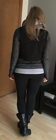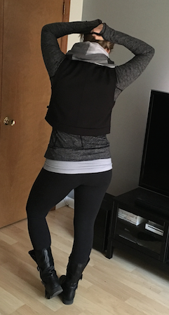 I had my eye on this one during the winter months, but was afraid the ‘crop’ length was too short for my torso. After such good luck with the Sweaty or Not Crop Tee, I was excited to see this one come around at the sale. I would have liked black, but they only had gray in my size. For a sale price I’ll compromise.