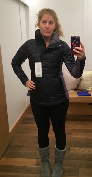 Overall, I certainly liked the Down for a Run Pullover, but I did not take it home with me. It’s very flattering, and would be very useful for someone training longer distances in winter temps.