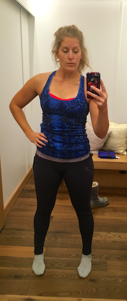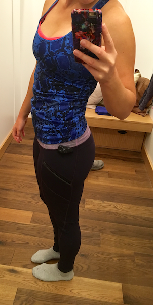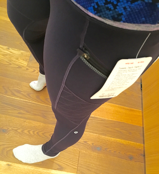 The Toasty Tech Tight II isn’t exactly a new drop, so I apologize for not having written this review up sooner. I tried on black grape a couple weeks ago, but it seems that only black is currently available online. (You never know, a store trip may still yield a little bit of luck – I thought I was totally toast on the heathered slate Energy Bra until it showed up in NYC last week.)