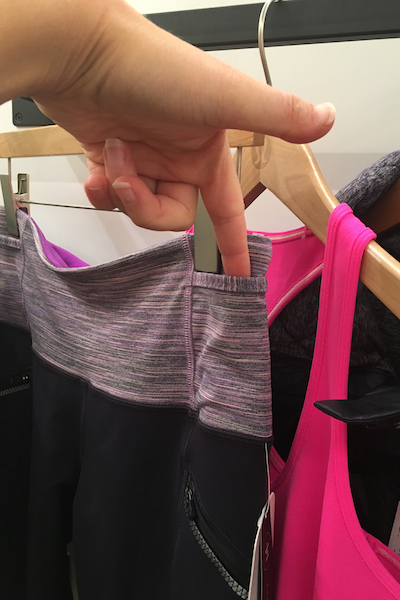 They’re a full-length tight with a few snazzy pockets throughout. There’s a side pocket in the waistband, along with a zippered side pocket. The only odd part was the criss-crossed stitching detail on the side. Given the tighter fit of the pants, I was afraid to yank these up holding the part of the pants with the detail because I didn’t want to pull and pop the threads.
