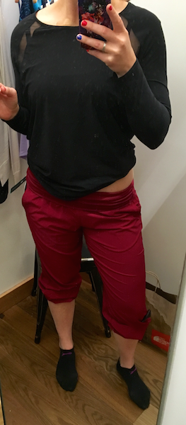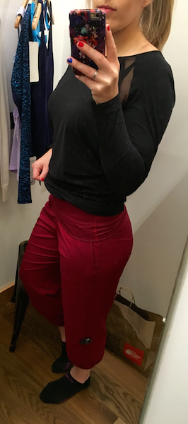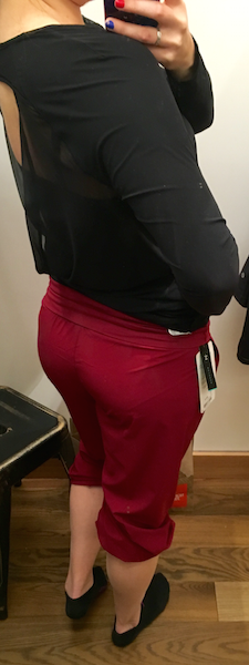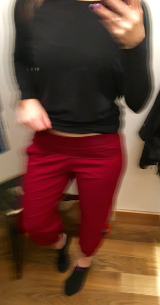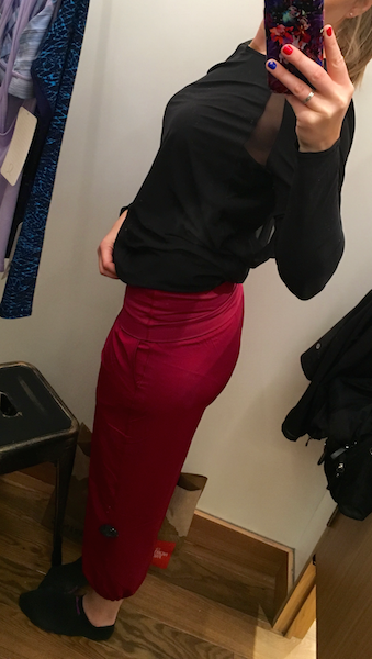 Did you size down? I did and they still felt kinda baggy, but I think if I went two sizes down they may be too tight. I told myself I don’t need any more black pants, and I would never wear the red, but I’m thinking of going back and trying on the black again in TTS, size down, and two sizes down. They were just so…. airy!! They look so cute on you. I can’t believe I am thinking of spending money on genie pants too. While I was trying them on I was thinking “genie! Genie!” but that other part of my brain was Homer Simpson “Auuuuugggg. I love these and neeeeeeed them…”
