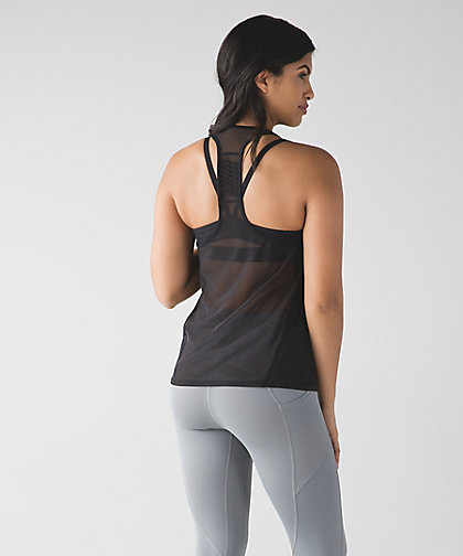 It’s hot out, and lately I’ve been all about the thick lulu mesh. This tank almost strikes me as a racerback version of the Sculpt Tank in the front. Full mesh in the back, but it’s cool breathable mesh, not slutty stripper mesh. A flattering, yet roomy, cut.