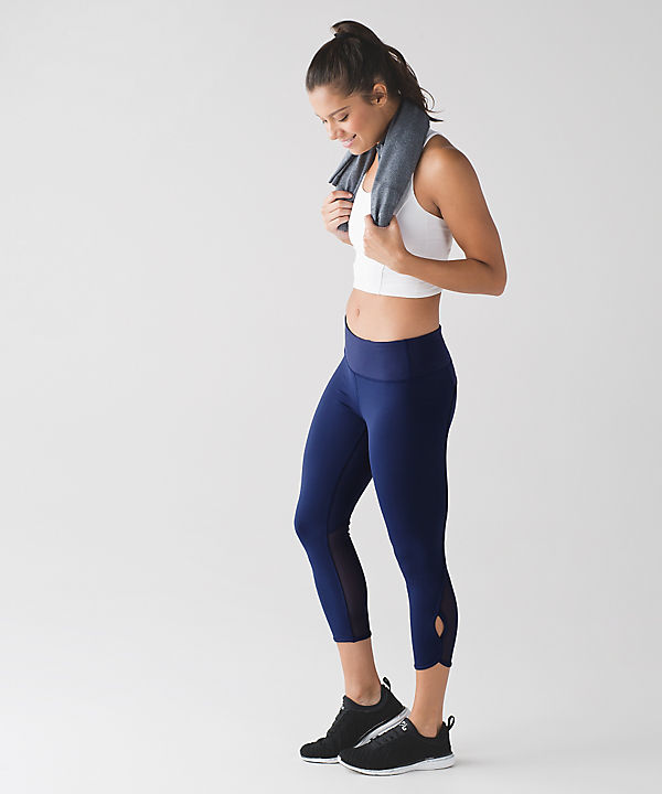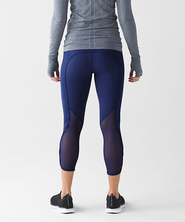 Sometimes lulu does dumb sh*t like put black mesh on navy pants. Thankfully that didn’t happen this time around. I really like the seams/construction of these with the fun keyhole detail on the calf. Well done, design department. *golf claps*