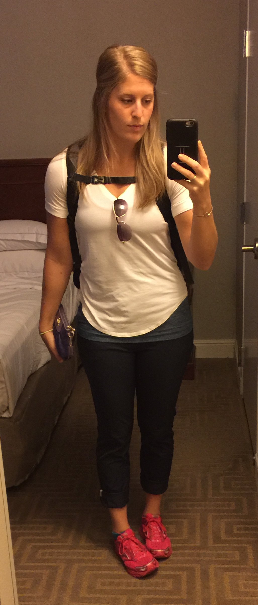 My frequent travel is what led me to pay so much attention to athleisure in the first place. When you’re at a NASCAR race in south Florida, mandated to wear pants due to occupational safety requirements, it gets sweaty. Working full-time in remote sports broadcasting, so I often times need to go where the sports are.