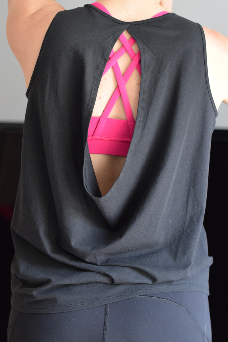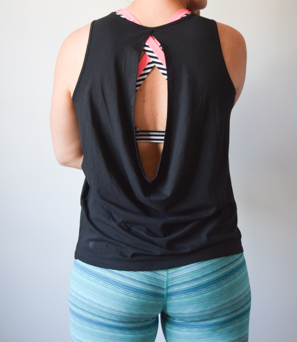 C’mon though, while the front is great, the reason most of us have bought (or will buy) this tank is the open back. This is the time to grab your jazziest lululemon bra for a pop of fun in the back!