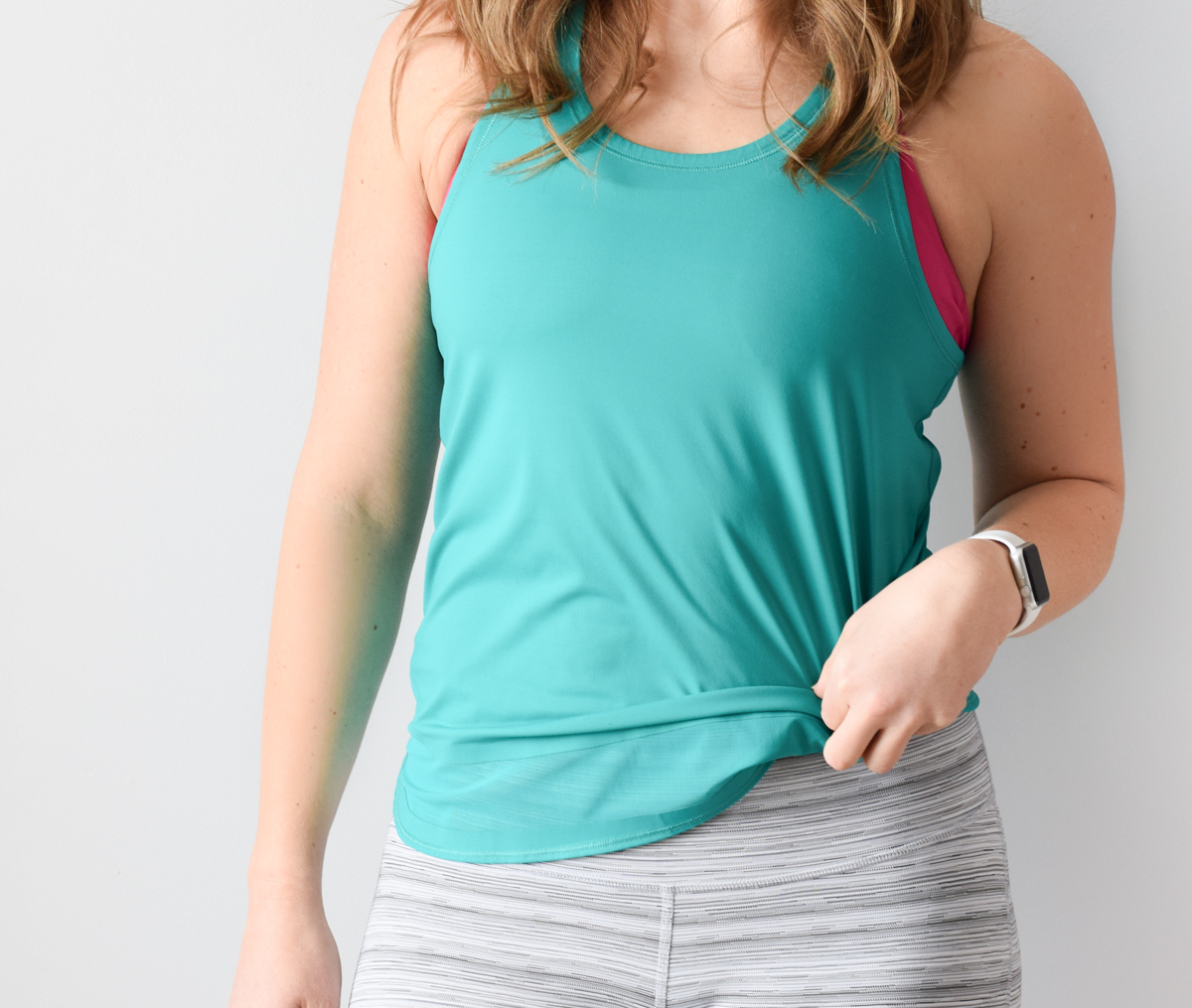 I’ve been on a 6-month kick of loose-fitting tops. I especially like them for running, so my FlipBelt can sneak in there without interfering with my shirt. While it doesn’t necessarily translate on the website with thinner models, this tank does a good job of staying loose, without looking like a potato sack. Luxtreme holds its shape well.