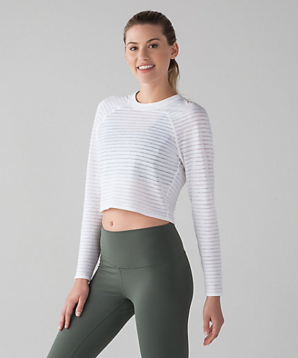 This isn’t the first (and won’t be the last) of the cropped long sleeve shirts lululemon’s been offering lately, but this one I am liking more than most. It’s cut a bit slimmer, so that you don’t lose all your shape like you may with one of the boxier styles, but at the same time it’s not skin tight. Perfect for a *slightly* chilly summer night.