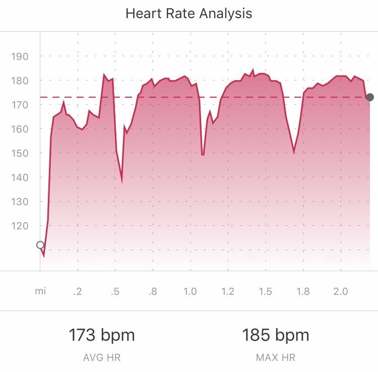You can tell there are 2 notable HR spikes in there. The first one is when it started raining. The second, I was finishing up my run on a portion of the trail where I’d be finishing a max effort mile run at CrossFit. I got a little excited about the idea, and also really confused as to how in the hell I was ever capable of a 7-minute mile, and if I’ll ever be able to do it again.