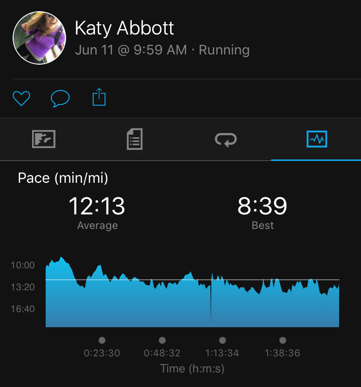 That run took place in the burning, humid depths of hell. Coach says, that if you can handle it, try training outside when it’s hot out. Reason being, Sunday wasn’t “teehee it’s 77 out, I’m feeling a little warm”, but 94 degrees with thick, humid air. So, I went out at 10:00a in the name of ‘heat training’.