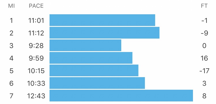 Every single step of this run felt laborious. I thought if I was conservative on the first tempo mile or so, that I’d be able to achieve a more consistent result over last week. Mmmmm nope.