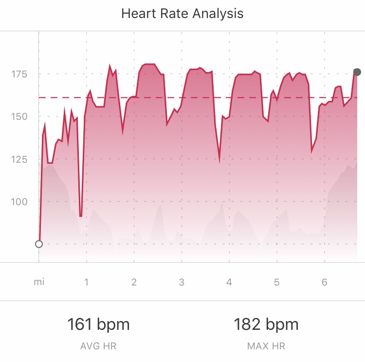 I was beyond grateful for some heart rate mileage, you don’t even know. Including the 5mi run (approx 7500 steps), I put 30,071 steps on the Garmin that day. Busy day at work spent hustling a lot of heavy cases around. SPENT.