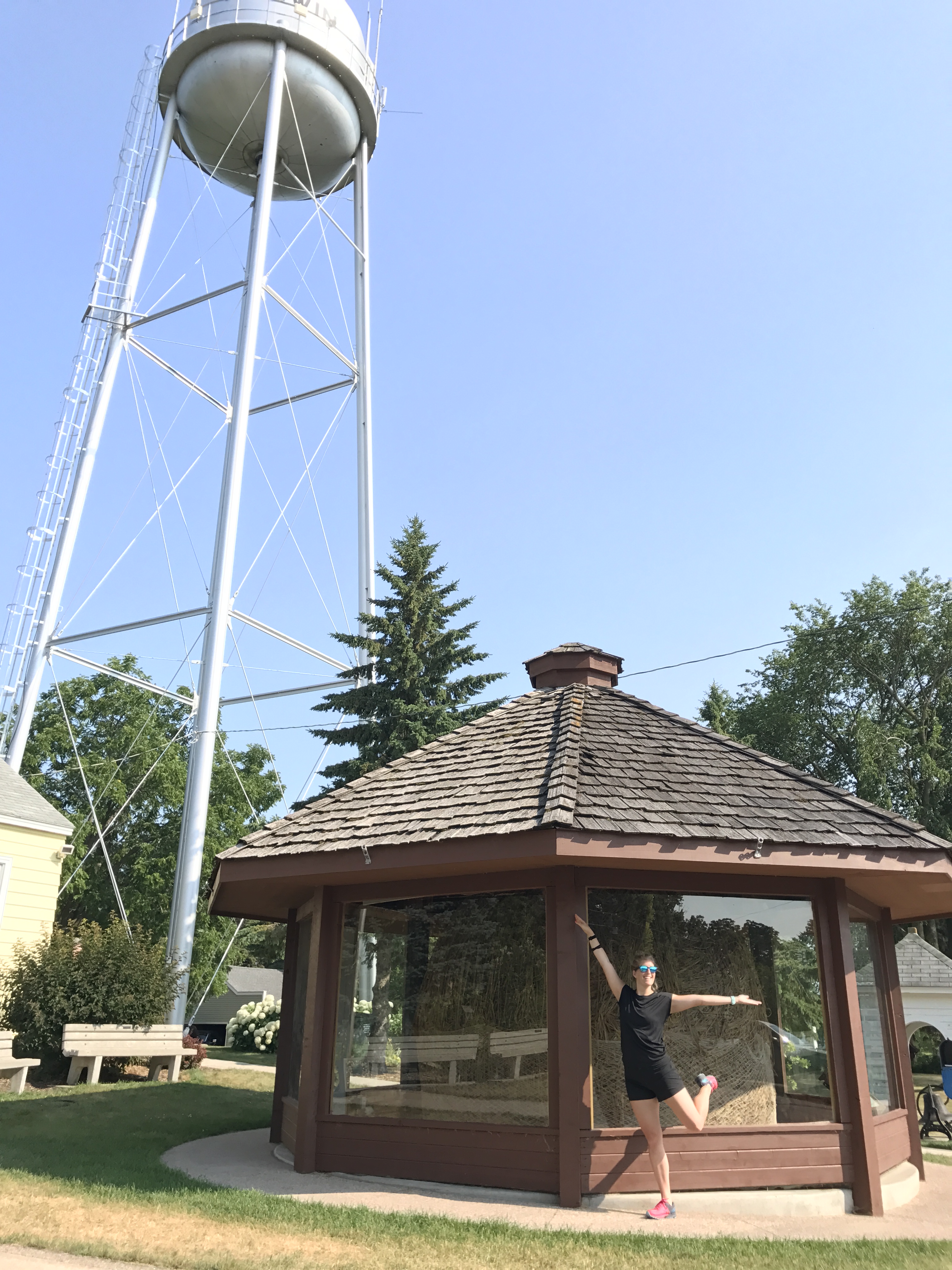 At mile 6 I stopped on purpose to refill my water bottle and ice down my neck on the front porch. It wasn’t until the 9th mile that the heat caught up to me so much that I even took my shirt off (that NEVER happens). My ice cold nuun water again went down faster in the second portion of the run and the last two miles was EFFORT to put one foot in front of the other, with all the stitches in my sides I kept getting.