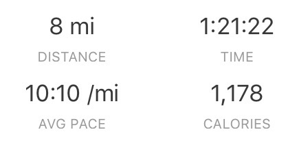 My distance peaked with 14mi in one shot in Week 16. This week’s long run was dialed back to a nice 8mi. Once a long run, now normal for me. Not mad about it.