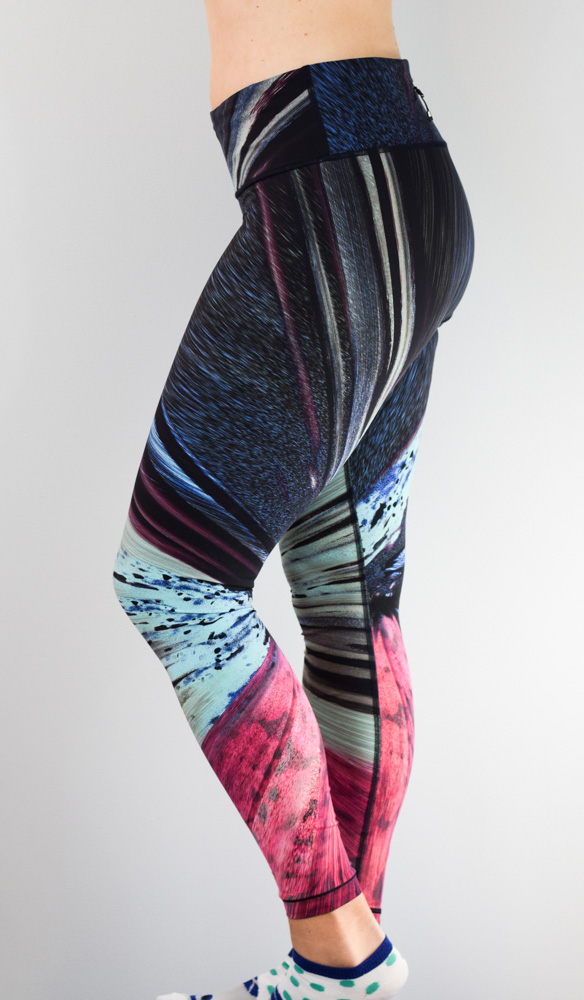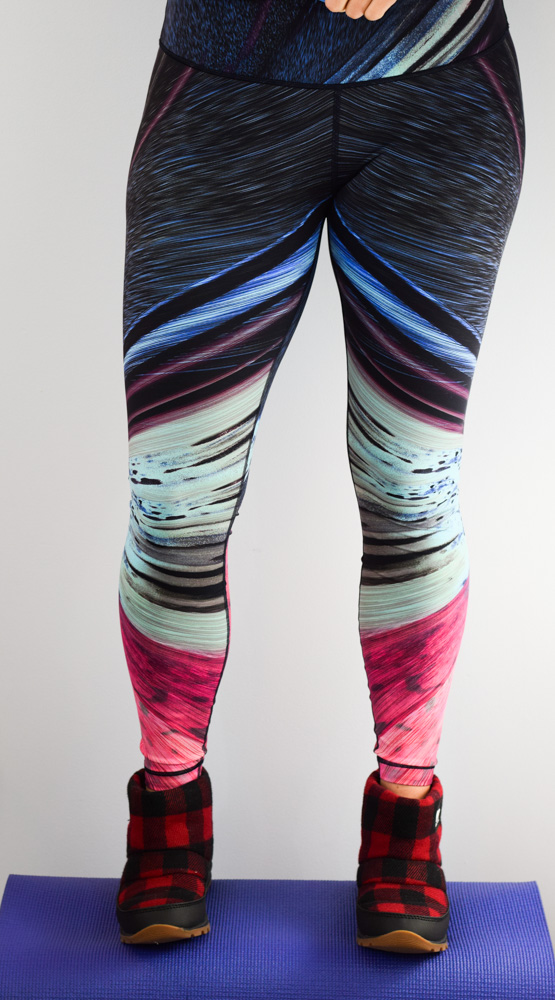 A short while ago, lululemon released an uncharacteristically spacy pattern, electrobeam multi. I can’t get enough of galactic space things, so cautiously ordered up both the Energy Bra and Speed Wunder Tights, knowing that bright colors mean that it’s all printed on a light fabric base. Now that I’ve had them for a few wears, time to share my thoughts!