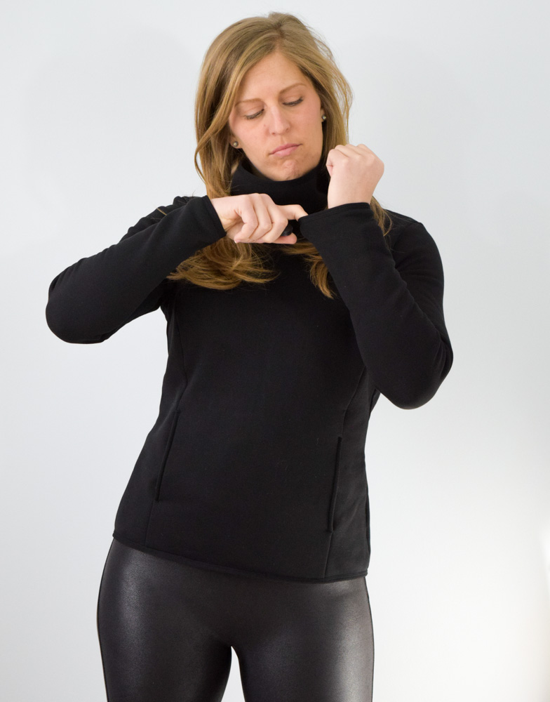 The Fit: The Cowl Pullover falls high-mid hip on my 5’9″ frame. Any shorter in the torso and I may not have sprung for it. Sleeves are a perfect length, hitting just at the base of each wrists. Lulu lovers, there are NO thumb holes to be enjoyed. Put your gloves on.