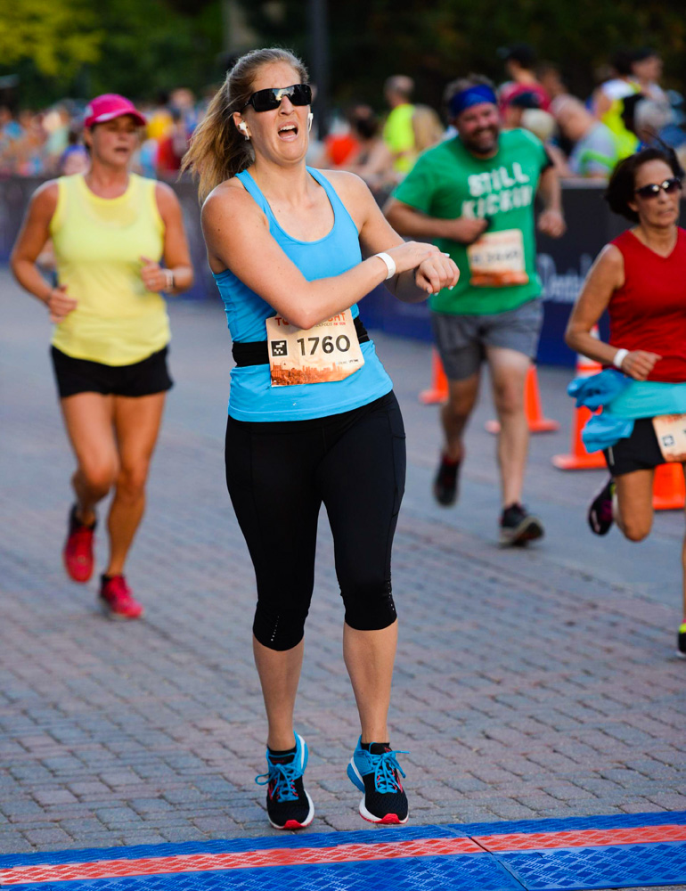 Like a Nervous Nelly I forgot to grab my water on the way out to the start line about a mile away from my hotel… which resulted in dry-mouthed anxiety leading up to the start. Tons of stretching and fidgeting later, we were off. All I knew that there were aid stations at 1 and 2 miles and I’d get a drink soon, just don’t go out too hot.
