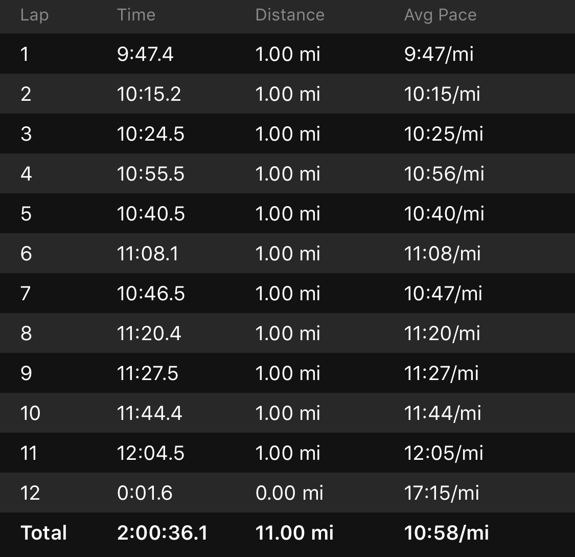 In my second full week I came to accept the fact that training every other day was going to be about the best that I could maintain without losing my composure, which is totally what happened last year. Sunday I had dinner plans with one of my local friends, and work started too early to get a 7-miler done in the morning.