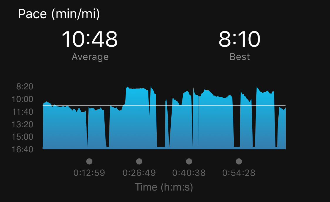 I really want to blame the heat, but I know my (lack of) fitness is part to blame for the fact that I felt like I was blazing fast for my last mile and I could hardly crack 11:00/mi. Discouraged and dehydrated, I wimped out on the cooldown. The stop & walk WAS REAL.