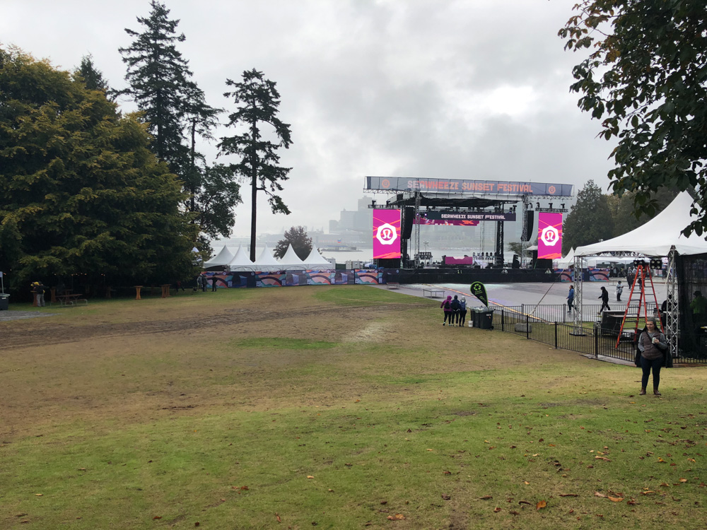 After being cold and wet all morning, the weather brightened up and dried a little. We decided if the rain stopped, then maybe we’d hit up the Sunset Festival… if wet, no dice. It seemed to brighten up, so we decided to hop on the bus, get in for an obligatory beer and then GTFO again.