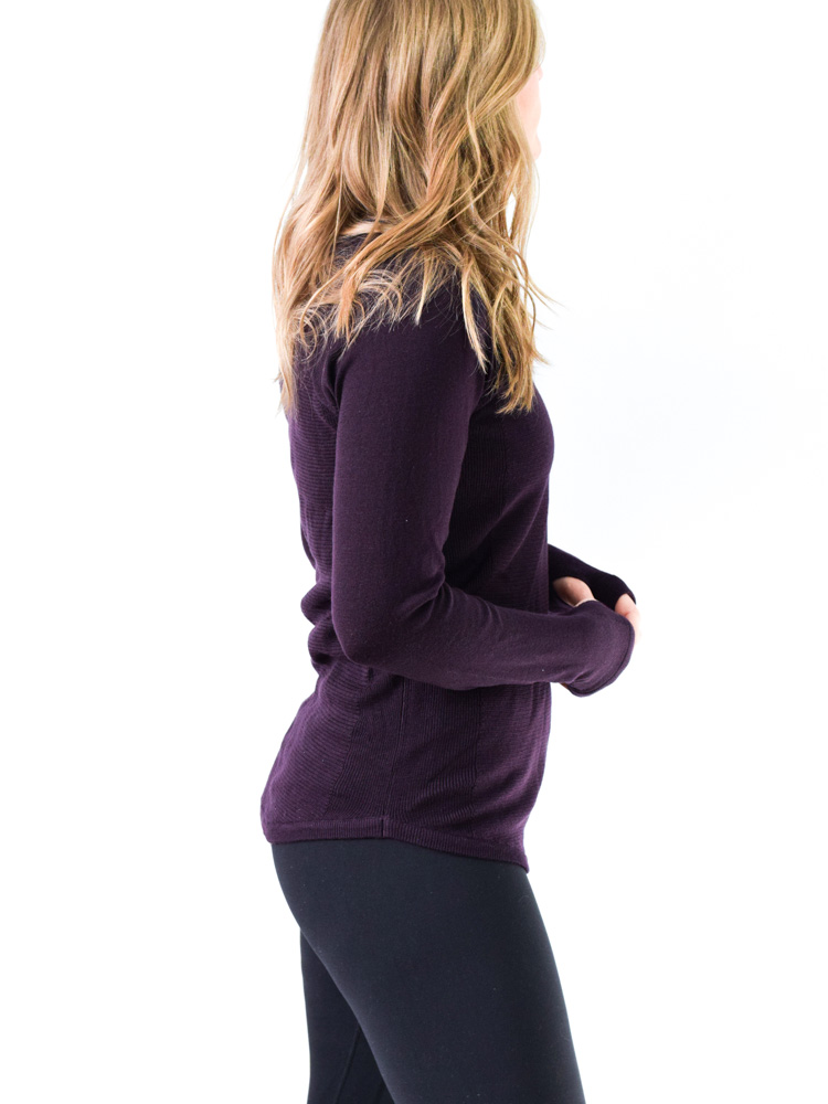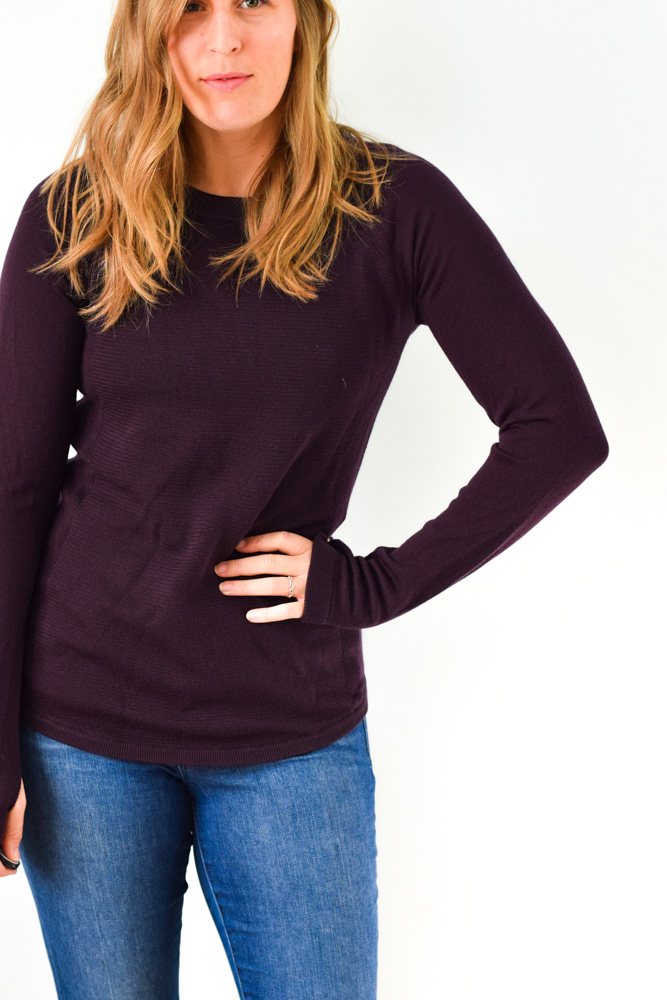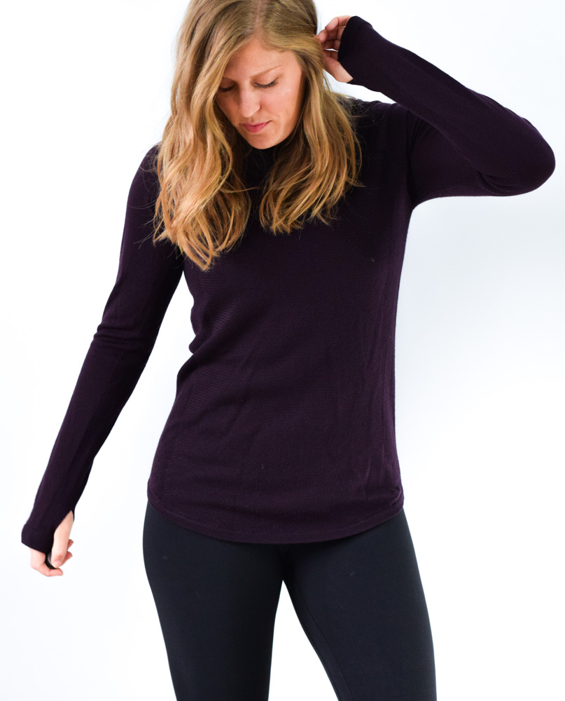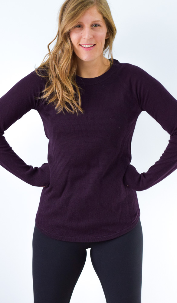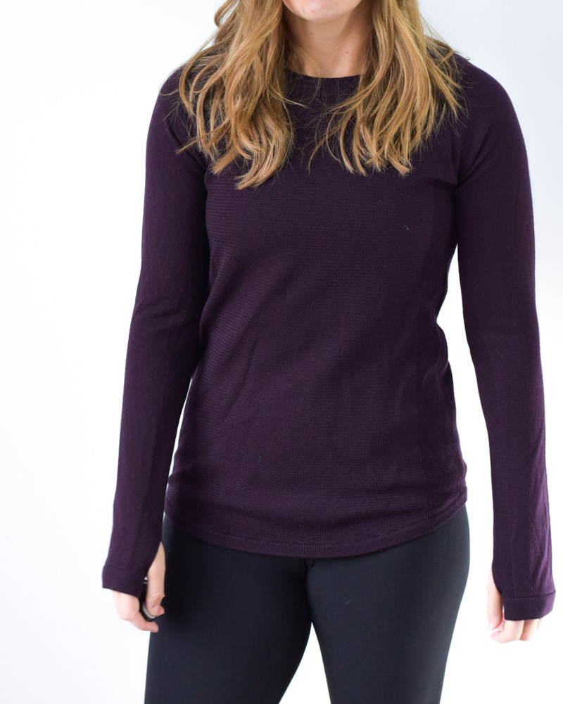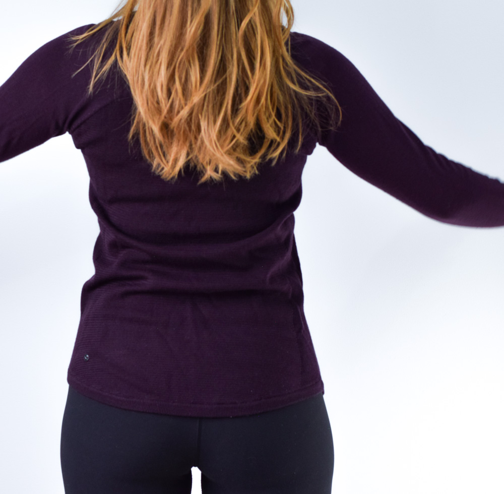 As I was Christmas shopping for others at Lululemon a few weeks ago, I couldn’t help but drool over a black cherry piece of something once I’d tried it on: Lululemon’s Sit in Lotus Sweater. So I bought it. Just this week, it’s moved over to WMTM with a significant price cut. So, how does it look?