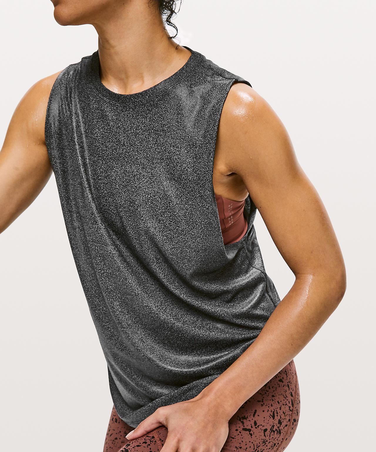 - Ride & Reflect Muscle Tank ($58) in Luminosity Foil Print Heathered Black Black – because I’m distracted by shiny things.