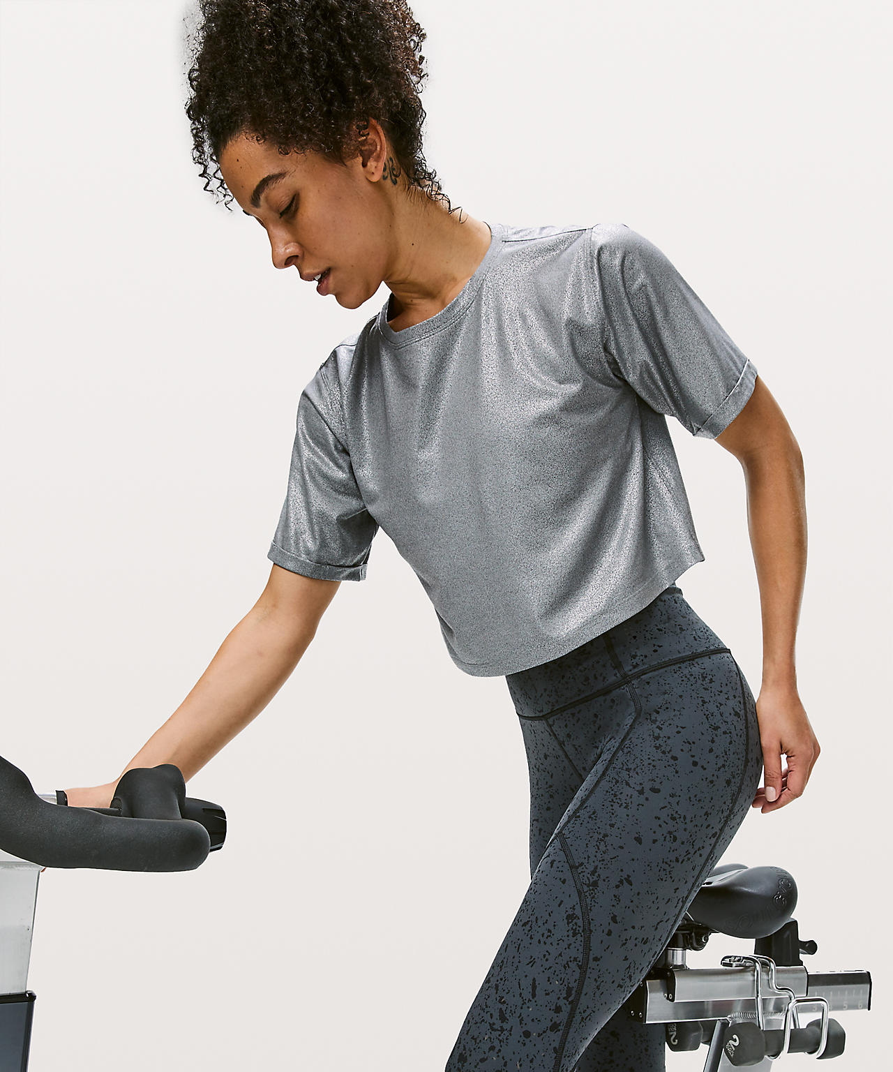 The Lululemon x SoulCycle collection is a curious mix of hits and misses for me. Black and sliver are always a sleek win, but the adobe dust is falling short, especially the tights with the black specks and reflective detail. Normally people lose their sh*t when lululemon drops a reflective capsule, but I’m honestly not sure how this one is going to go.