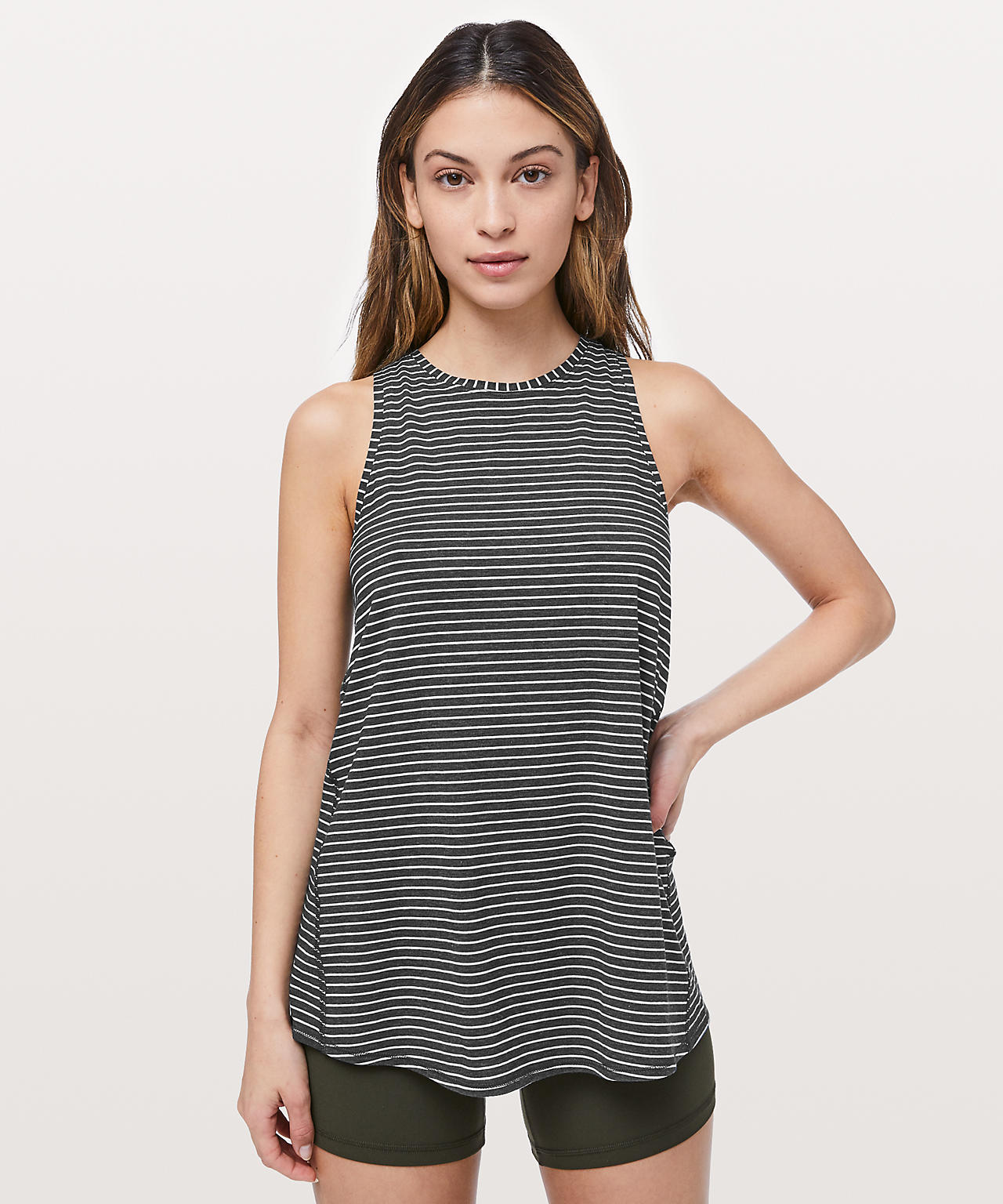 All Tied Up Tank ($44) in Modern Stripe Heathered Black White