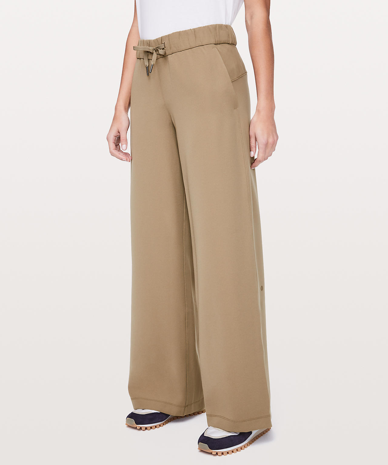 - On The Fly Pant Wide Leg Woven ($118) in frontier – These are the pants they made you wear at your job working the roller coaster at your local amusement park. I have friends who did that and did not enjoy the pants. I was a lifeguard for a Vitamin D fueled reason.