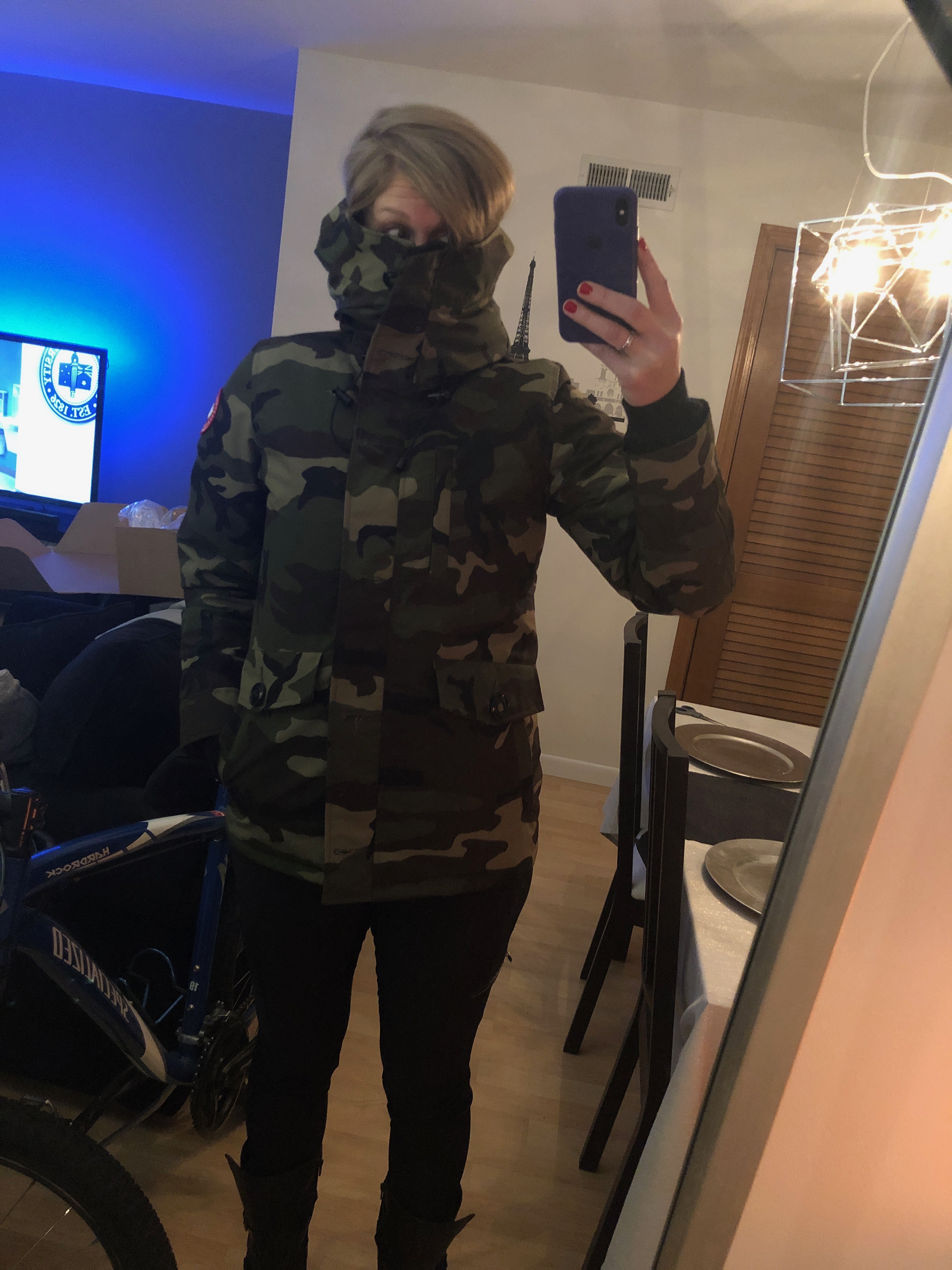 But anyway. I’ve got multiple perfectly good North Face jackets, so who the hell did I think I was considering it okay to spend this much on a jacket? Love at first sight drew me in, because CAMO. I went to the mall for an innocent trip to lululemon, and my usual route from the garage takes me through Nordstrom’s outerwear section (coincidence, I swear).