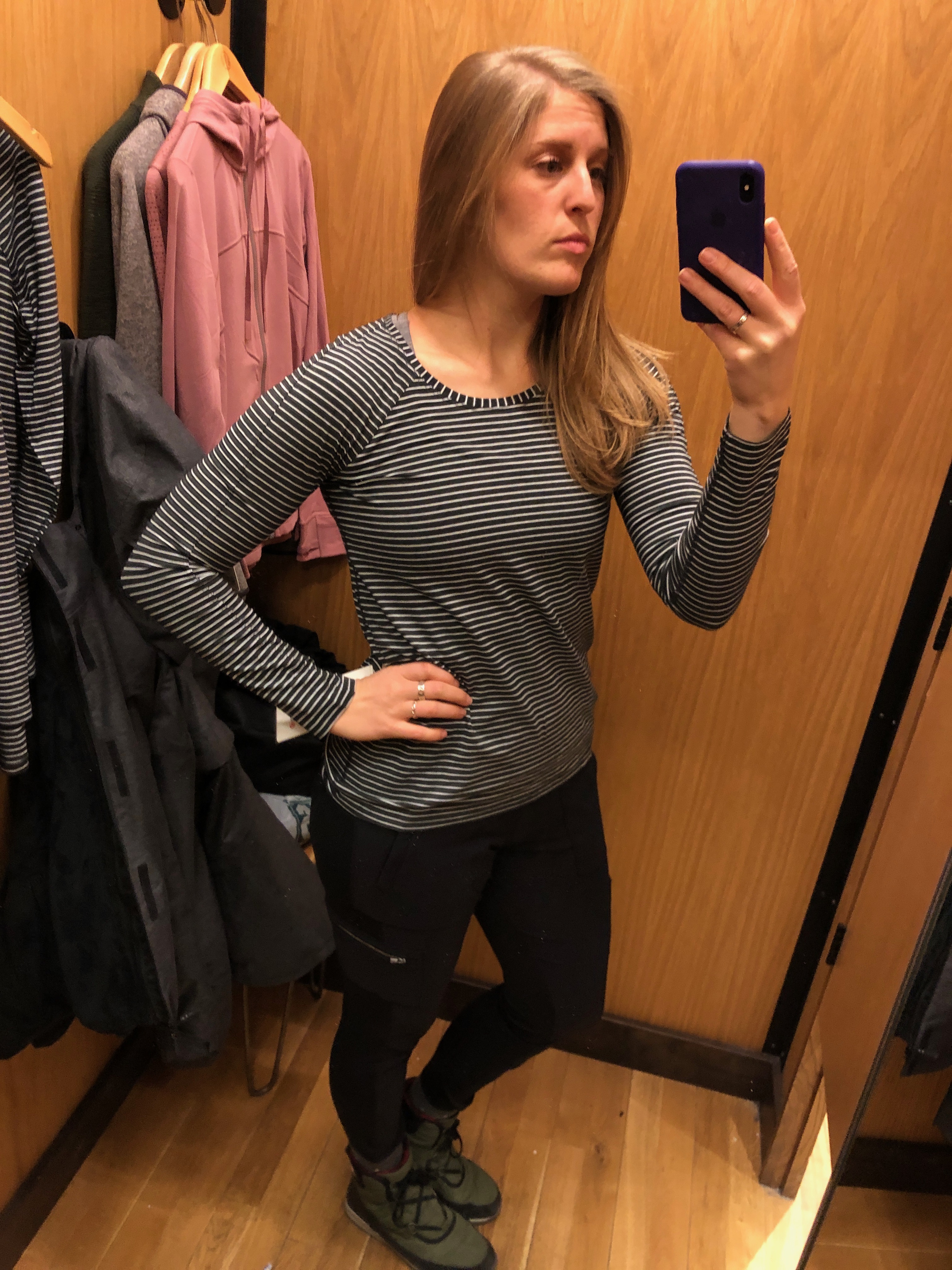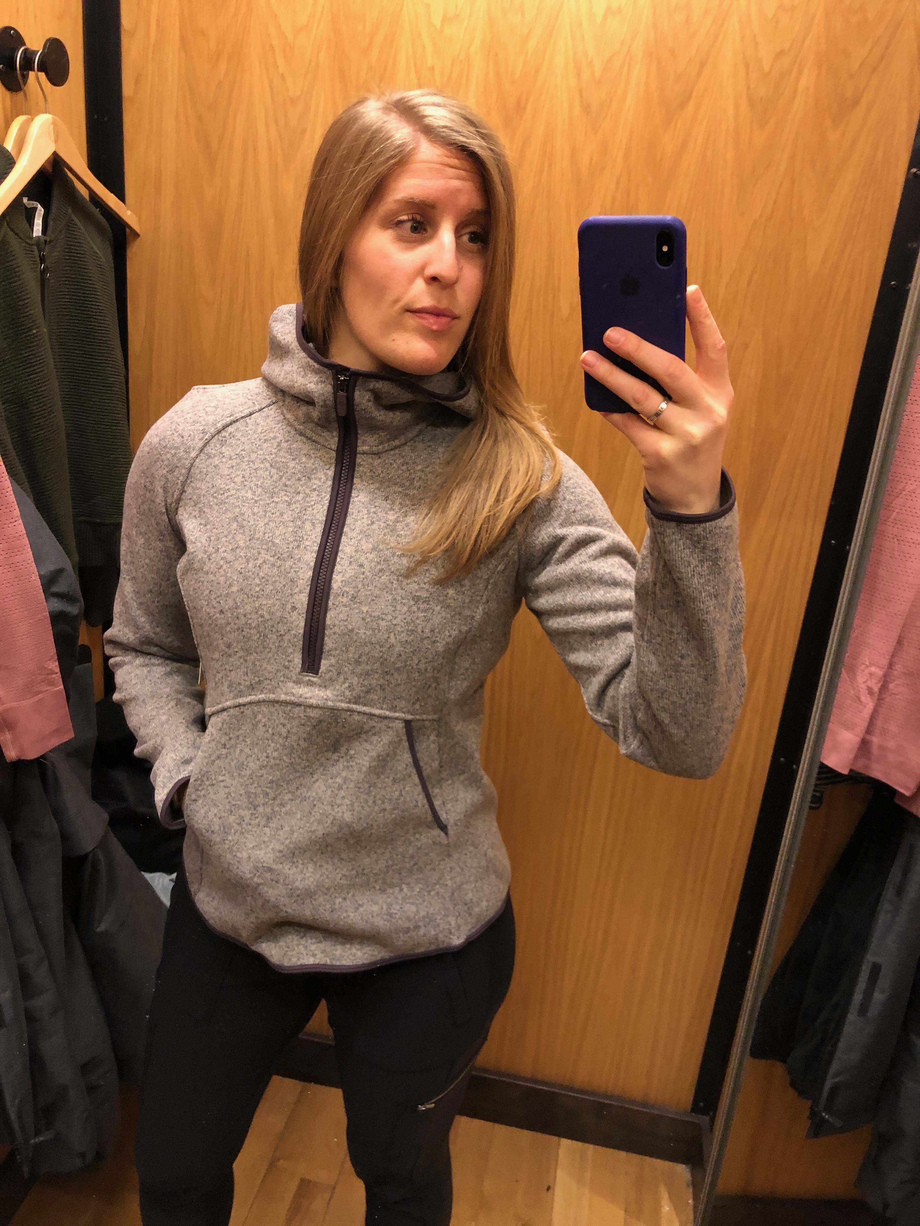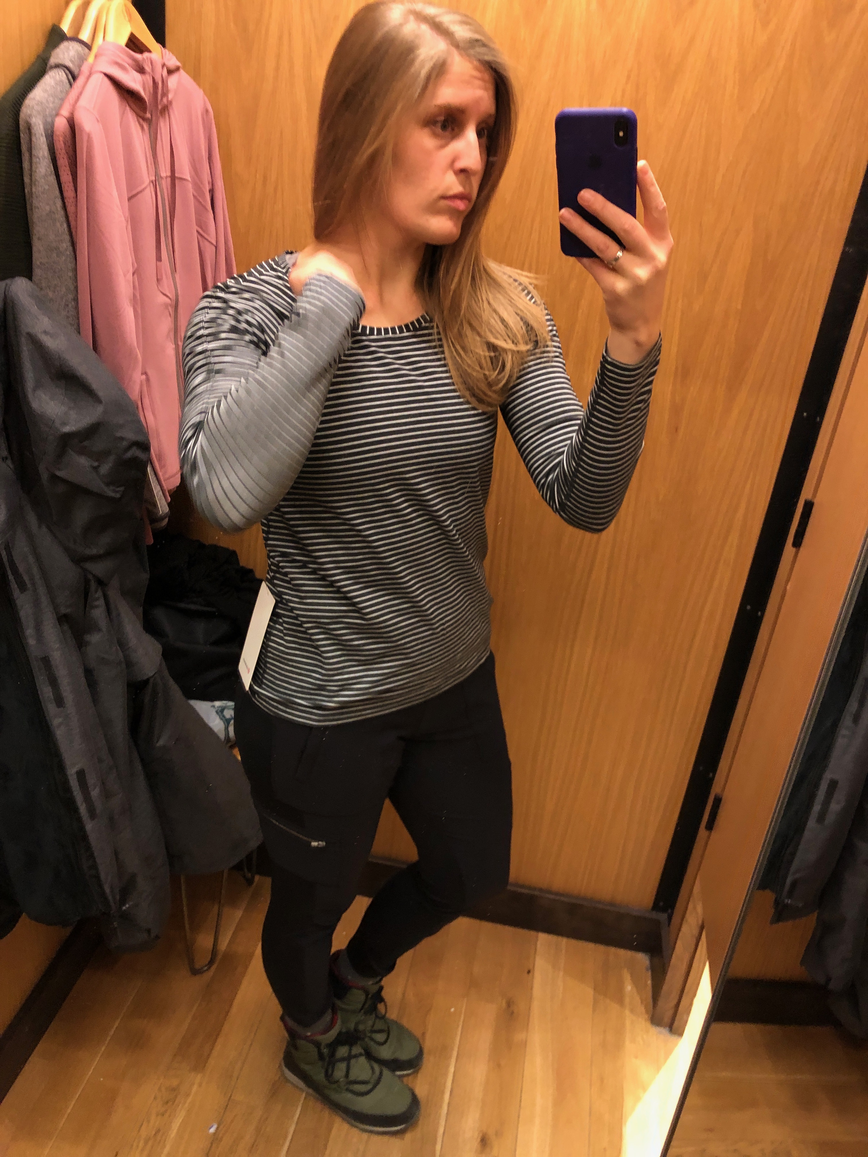 Even sizing up to a 10, this one was too damn tight, and the color doesn’t do me any favors. Far happier with my Stopover Jacket. The nulu fabric means it’s thinner than a typical Define, making this one best suited for someone who lives in a relatively mild climate.