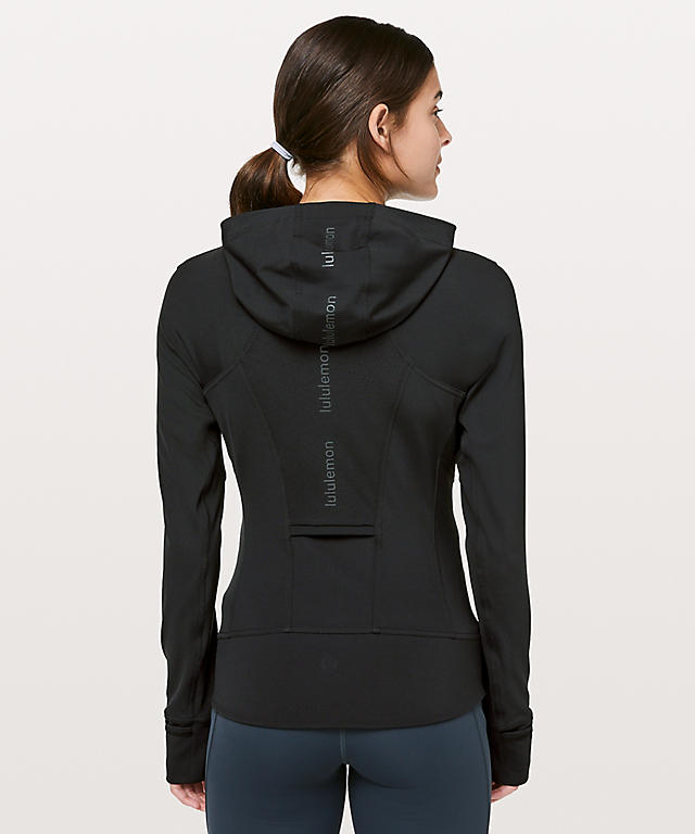 - Honorable Mention in the ‘Adorable Black Zip Up’ category goes to the Dash Into Dusk Jacket. Docking a point for the fact lululemon is printed out on the back. It’s reflective, though.