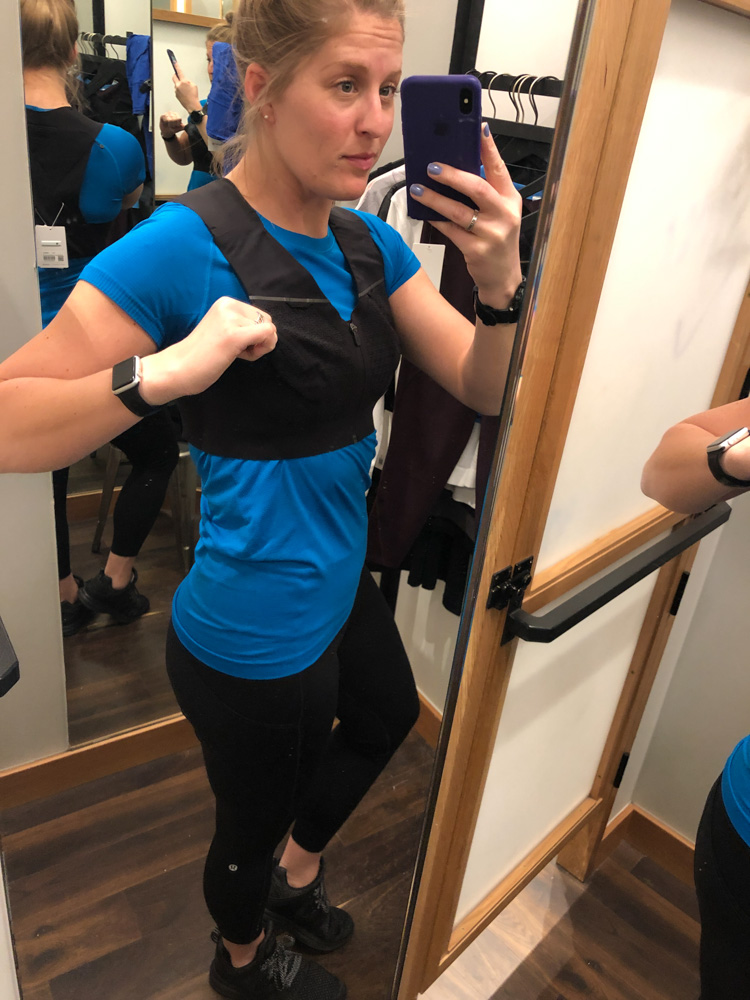So I found it. The pricey head scratcher which some people are stoked on and others say NO F*ING WAY. I scouted out lululemon’s Enlite Hydraffinity Vest in Scottsdale, AZ and took both the M and L into the good ol’ fitting room.