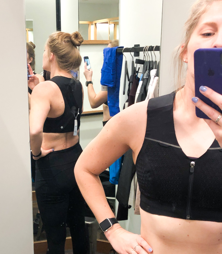 Because it’s adjustable, sizing options are S-M-L-XL. As a TTS 8, the Medium fit me perfectly. I thought I’d fit into an L but it was waaaay too roomy. I tried the L on over my shirt and still had plenty of room to spare in the band, cups and arm holes.