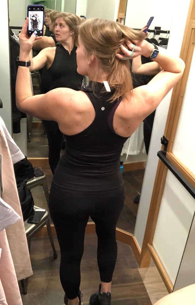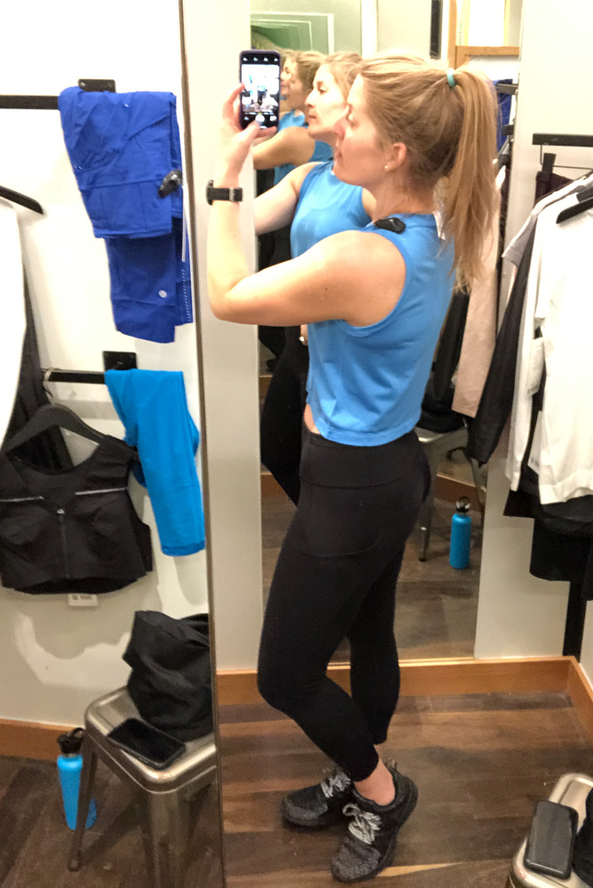 Honestly, this was the biggest dud of the bunch. I grabbed an 8 off the rack and it wasn’t just a “slim, body skimming fit” like lululemon’s website says, it made me feel like a choked out sausage.
