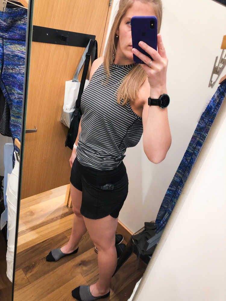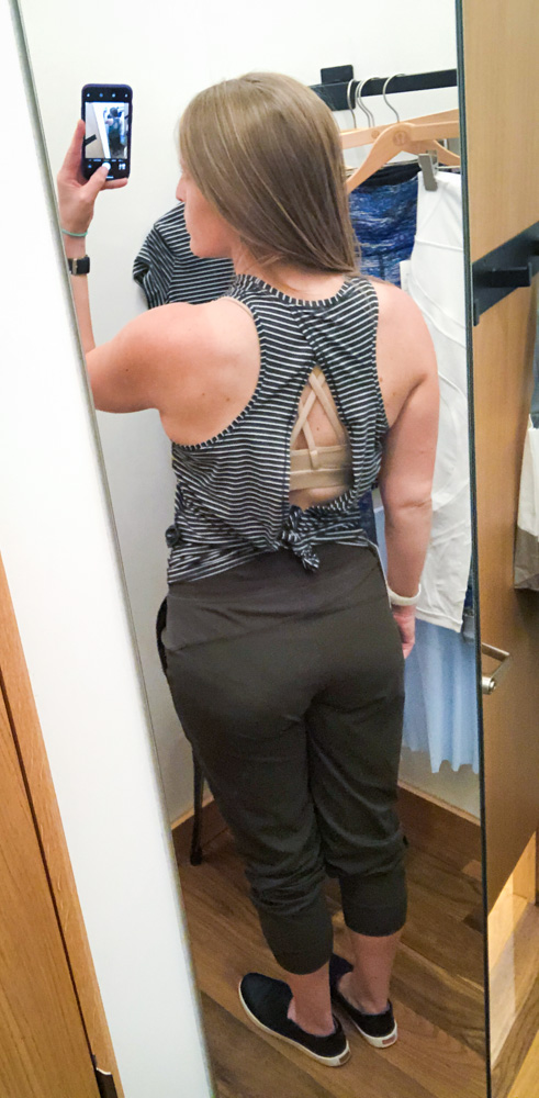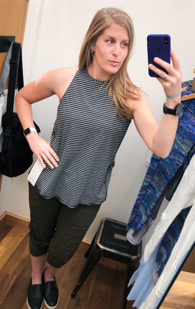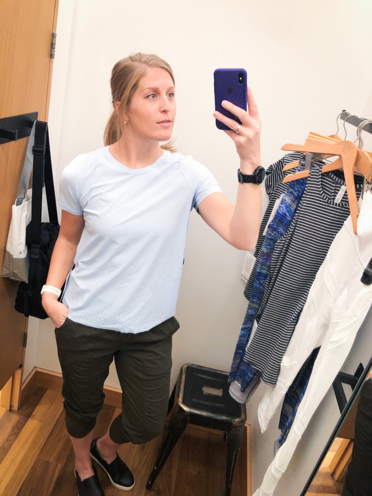 Breezy is quite the pretty color, but I couldn’t justify the price in my head. I do my best to include my lululemon short-sleeved options in my work wardrobe, and the open back definitely means casual. I’ve got plenty of room in a TTS 8. It’s made of techie UPF fabric, so it’s a nice candidate for keeping you cool(er)-ish on hot days.