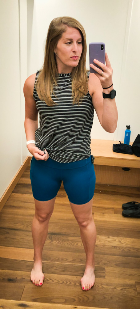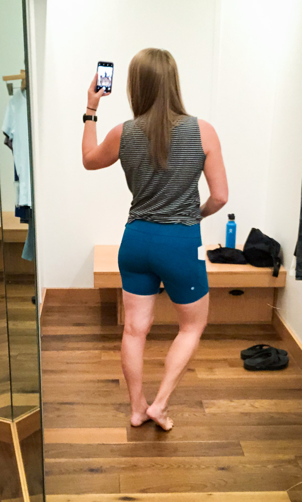 The All It Takes looks really good on you and the stripes are cute. The stitching on the butt of the Inner Glow Tight doesn’t look quite right – if you like that type of design check out Alo’s Goddess Leggings, they’re incredible.