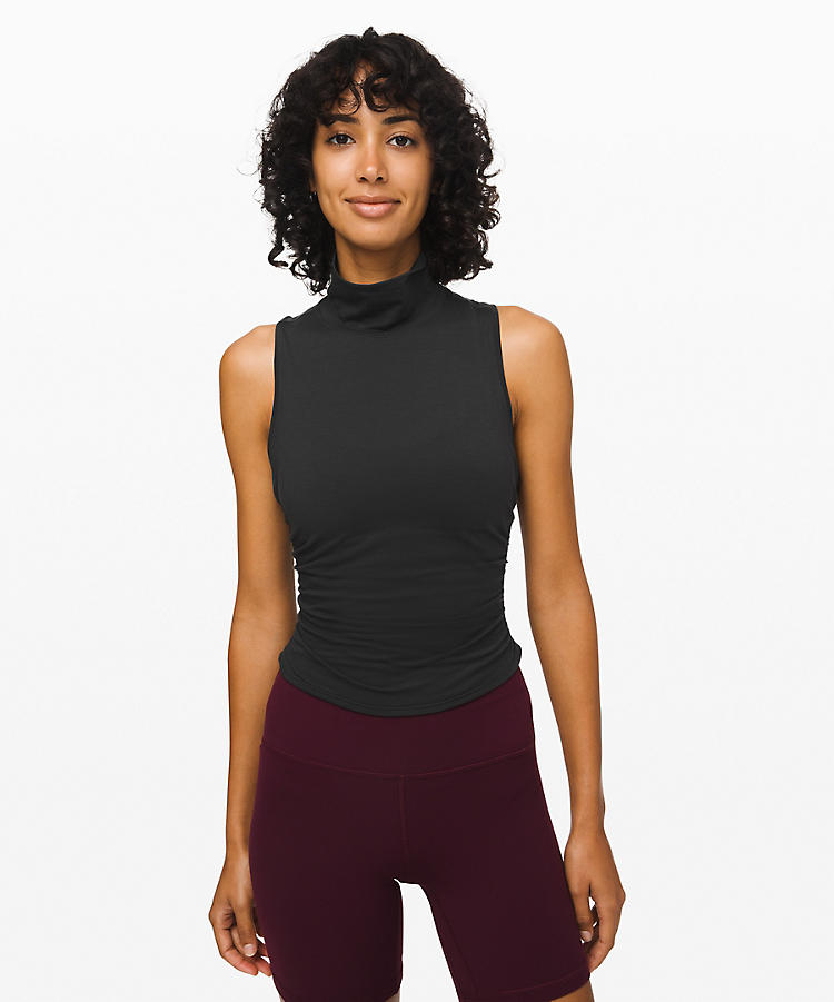 Maybe I’d wear a mock turtleneck to yoga if I actually went to yoga class. Maybe not. What I’m thinking here is work clothes. Layer it under a blazer and keep cool. Also comes in rustic clay and white.