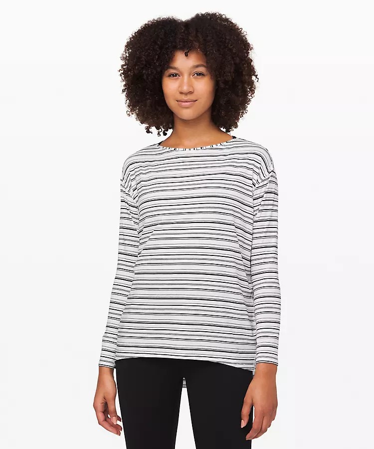 - Back in Action LS – Cut Back Stripe White Black – I own it, I like it, but beware on the sizing. The arms FIT but the bodice is really loose. I’m a TTS 8, went down to a 6 and still have room for days in the midsection. {Fit Review} / $39