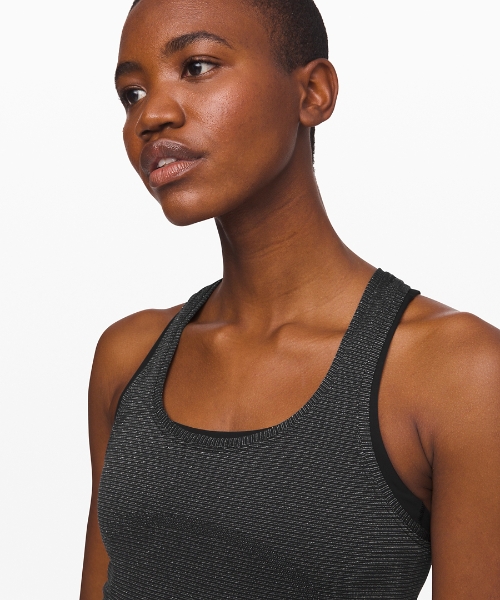 - Speaking of shiny objects, lulu snuck in a black/silver Swiftly Speed Racerback *Shine on us.