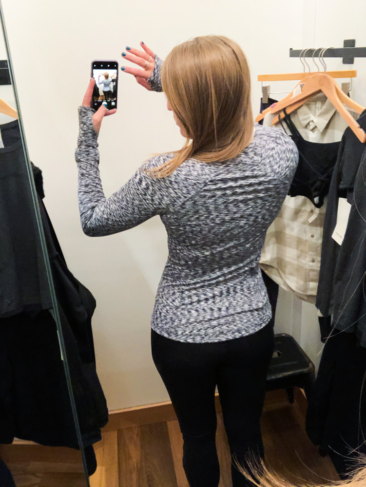 Of all the items I tried on that day, this is the one piece that earned a ride home in a little holiday shopper tote. I was admittedly too dazed to fix all the twisted straps when trying it on. I’ve been an Energy Bra lover for years, and this one is right up there with the Braided version for one of my favorite spins on this core design.