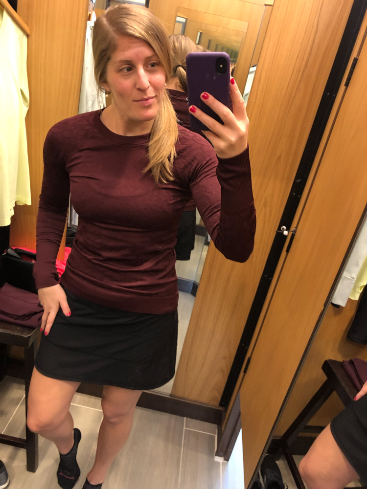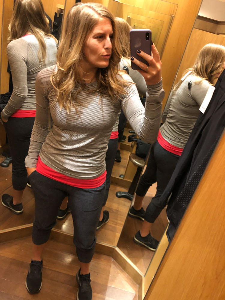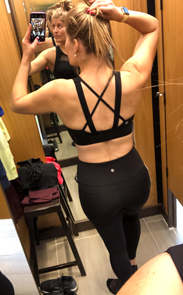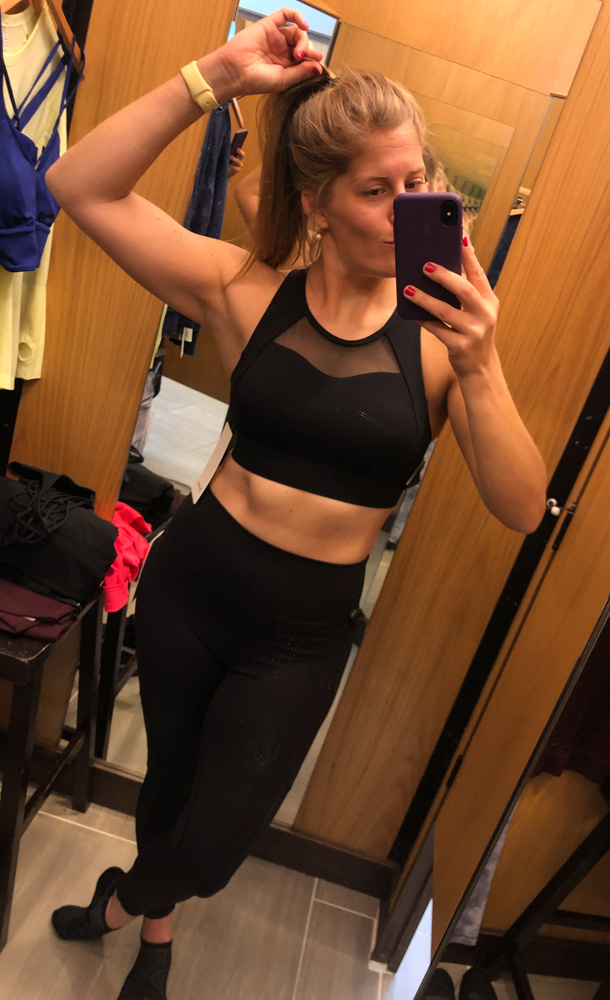 Honestly, I was wearing a skirt and figured that wasn’t going to be the best look for the sports bra photos, so these were the first ones I saw on the closest rack near the Fitting Room.
