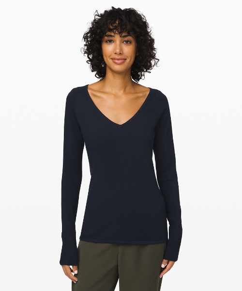 - Stand Steady V-Neck Sweater – True Navy / $69 – More color options available (oh hi Black and Dark Olive, but True Navy has the most size availability.