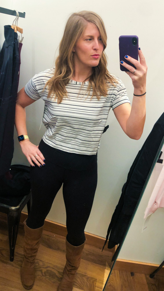 I was wearing a cami & Aligns under the shirt dress I had on that day, so I was able to see what this crop would look like without high-waisted pants that just aren’t high enough. Being tall is (mostly) fun.