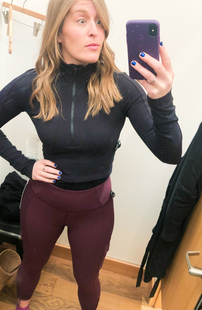 The Take it in Stride 1/2 Zip is tight! I’m a true 10 in Lulu tops but I ended up with a 12 in this. I could say maybe, juuuuust maybe I’ve gotten bigger but I’d prefer to say that the clothes have gotten smaller 😉