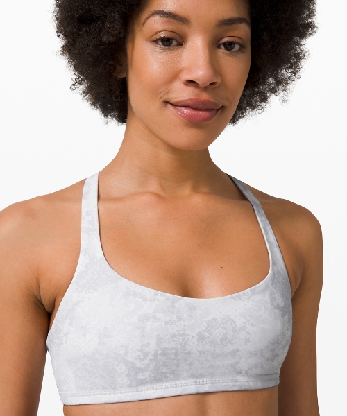 - Energy Bra High Neck – Future Oasis Grey Multi / $39 – Sizes 4, 8, 10, and 12