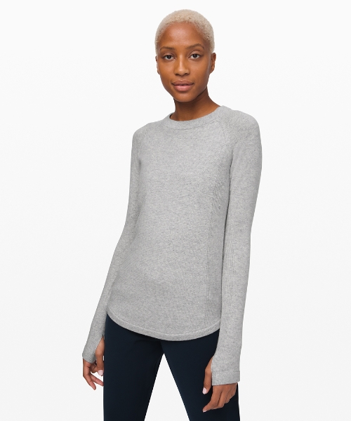 - Sit in Lotus Sweater *Cashmere – Heathered Core Light Grey / $108