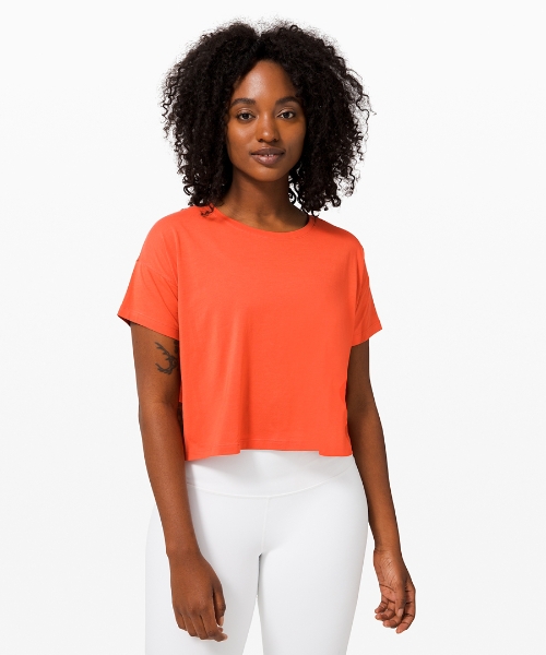 - Cates Crop Tee – Brick, a complete 180 from the sweater, will also look adorable with denim shorts this summer. Gotta dress up for that mailbox walk.
