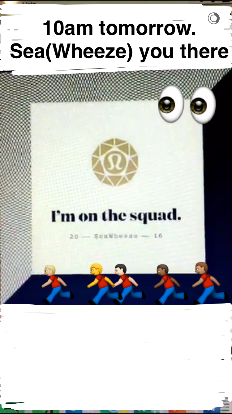 Go find Lululemon on snapchat and be there or be square following their story at 10:00a (Pacific) today....